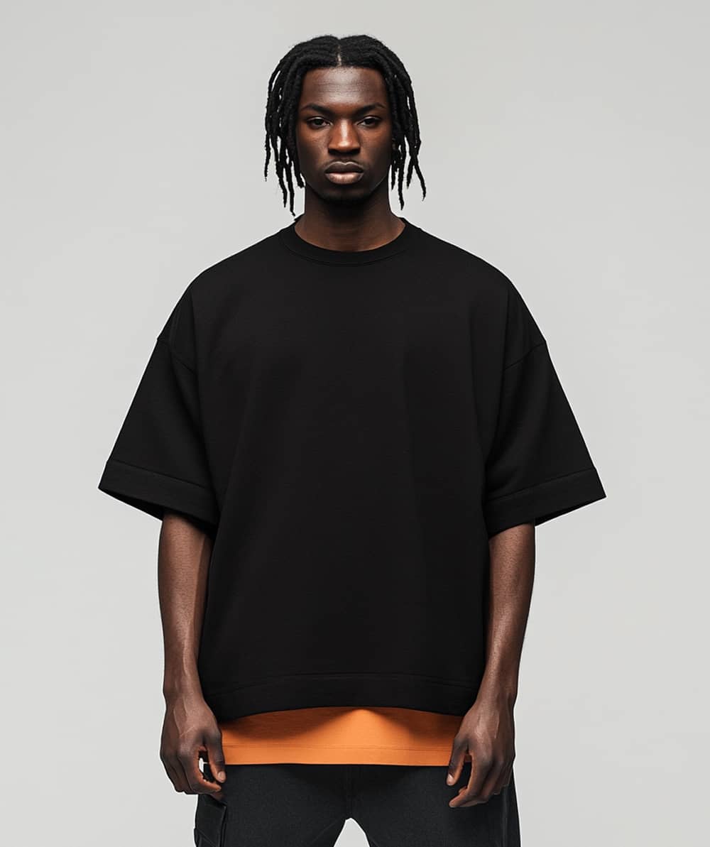 A sleek oversized black T-shirt with a relaxed fit. Made from premium fabric for all-day comfort.