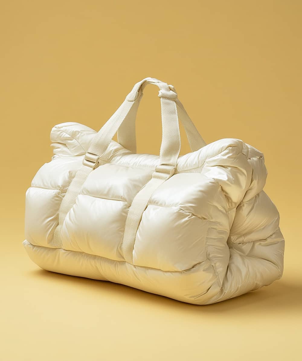 This puffy quilted duffel bag redefines travel essentials with its plush, cloud-like design. Crafted from lightweight, insulated material, it offers a unique blend of style and functionality. The spacious interior provides ample room for all your belongings, making it perfect for weekend getaways or gym sessions. Durable straps ensure a comfortable carry, while the soft, padded exterior adds a cozy, modern touch. Elevate your accessory game with this statement-making duffel that merges fashion and practicality effortlessly.